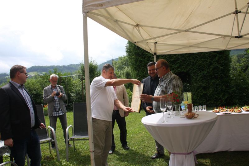 Anlässlich des 40-jährigen Dienstjubiläums von Mitarbeiter Kalteis wurde Andreas Schöllbauer im feierlichen Rahmen am 20. Juli eine Urkunde überreicht.