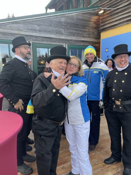 NÖ Landeshauptfrau Johanna Mikl-Leitner und Landesrat Jochen Danninger, sowie der steirische Landeshauptmann Christopher Drexler freuten sich über die Abordnung aus Niederösterreich und drückten gemeinsam den Rauchfangkehren die Daumen für die Rennläuferinnen. Aber auch die Besucher:innen freuten sich über die schwarzen Glücksbringer und drehten nach altem Brauch fleißig an den Knöpfen der Uniformen, um auch selbst Glück zu erhalten.