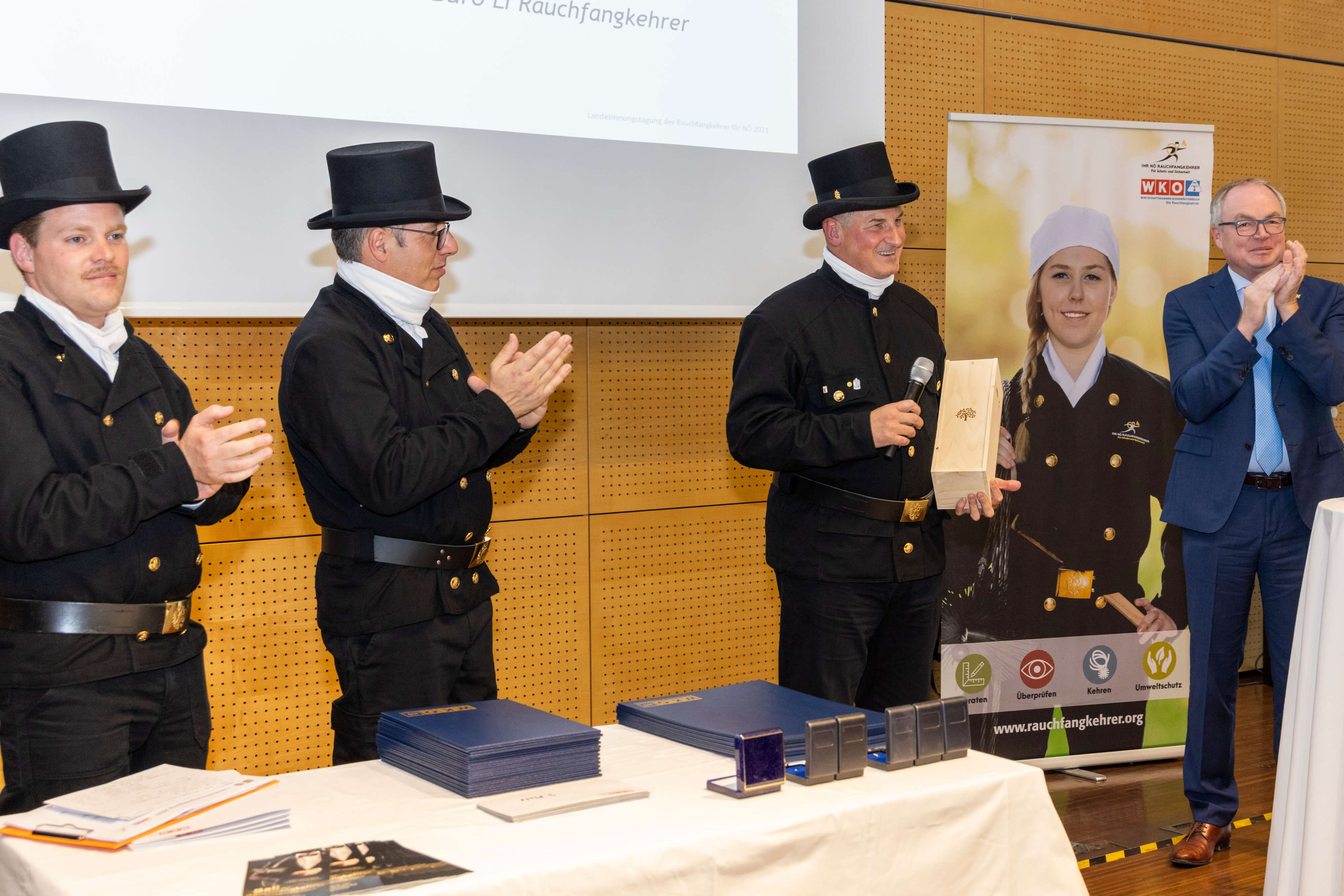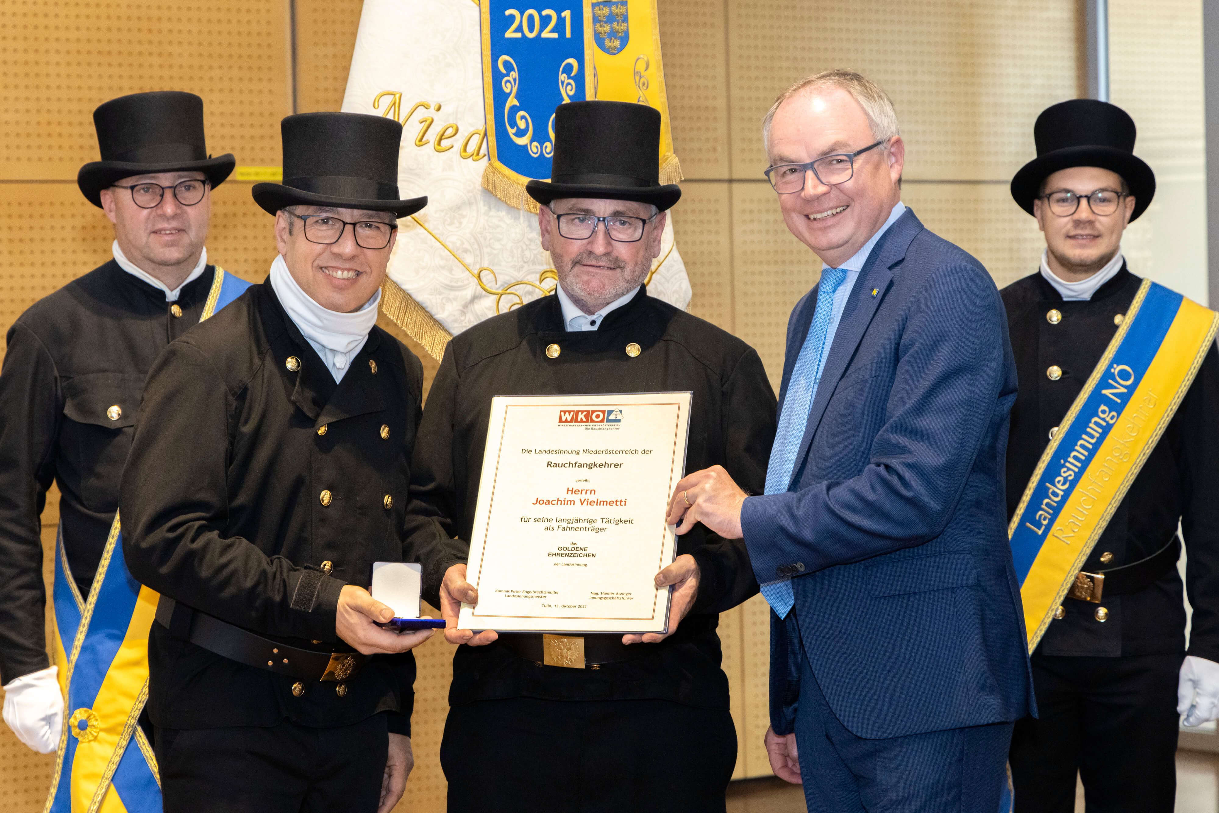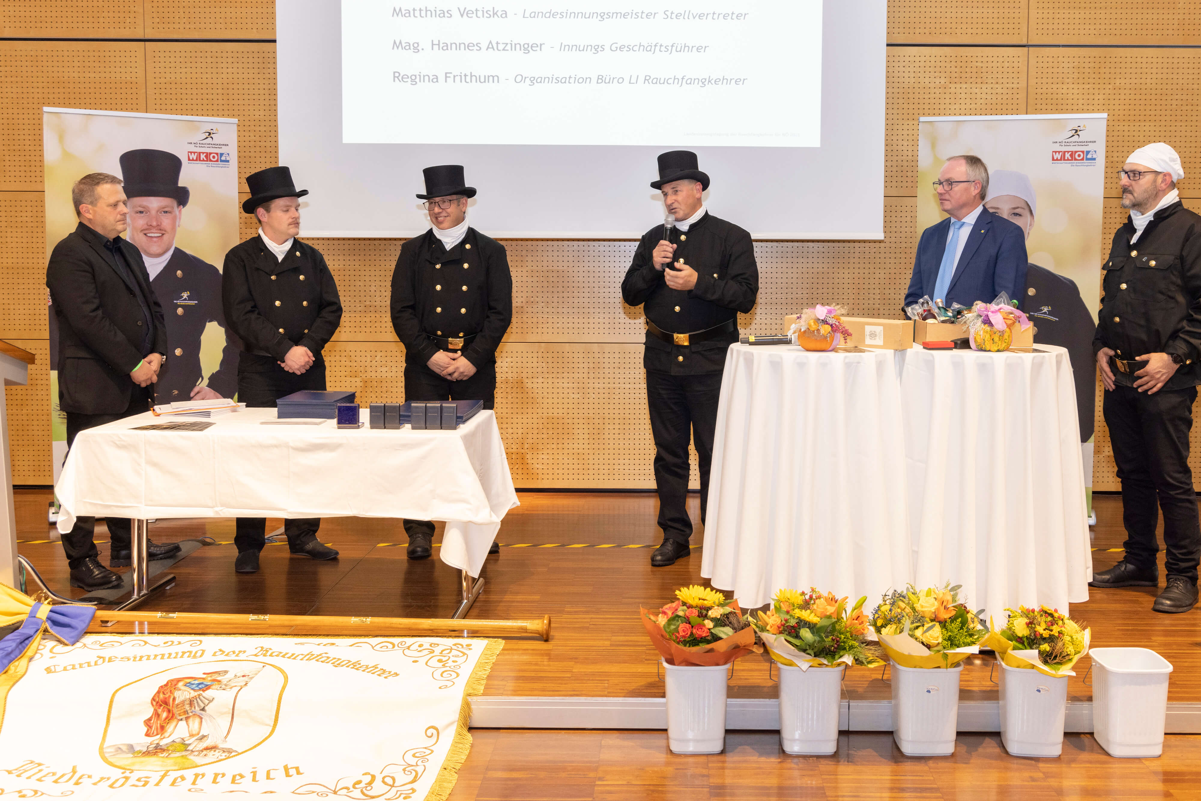 Im Rahmen der Landesinnungstag der Rauchfangkehrer für Niederösterreich in der Landesfeuerwehrschule in Tulln fand die Übergabe der Spitze der Niederösterreichischen Rauchfangkehrer statt. Kolleginnen und Kollegen aus allen Landesteilen Niederösterreichs, sowie Vertreter der NÖ Landesregierung, des NÖ Feuerwehrverbandes unter weitere zahlreichen Ehrengäste waren zur Tagung nach Tulln gekommen.
